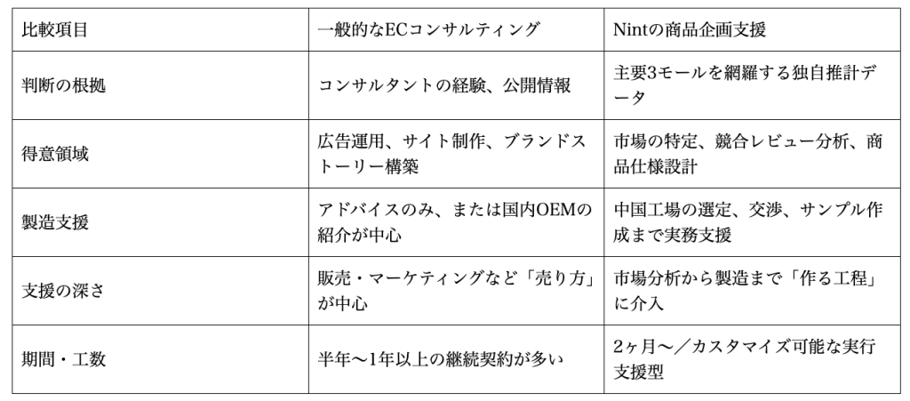 【出典:「【事業者向け】Nintの商品企画支援サービスとは?他社比較でわかるNintの強み(2025年12月25日公開)】