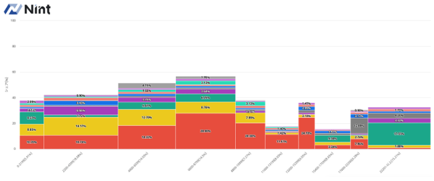 市場の見える化を実現するツール「Nint ECommerce」でTOPメーカーの価格別売上構成比を見ると以下のように確認できます。