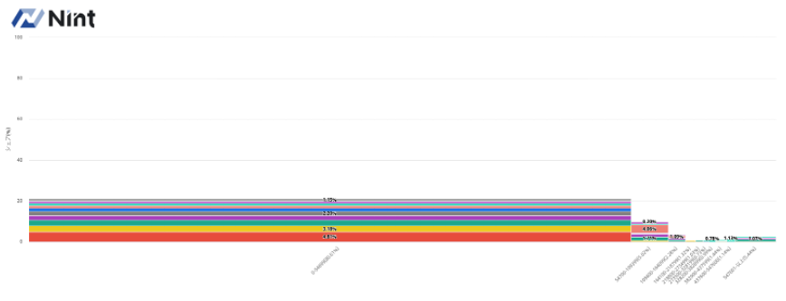 市場の見える化を実現するツール「Nint ECommerce」でTOPメーカーの価格別売上構成比を見ると以下のように確認できます。