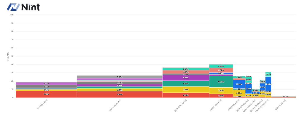 市場の見える化を実現するツール「Nint ECommerce」でTOP5メーカーの価格別売上構成比を見ると以下のように確認できます。