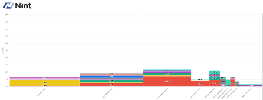 市場の見える化を実現するツール「Nint ECommerce」でTOPメーカーの価格別売上構成比を見ると以下のように確認できます。