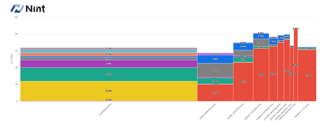 市場の見える化を実現するツール「Nint ECommerce」でTOP5メーカーの価格別売上構成比を見ると以下のように確認できます。