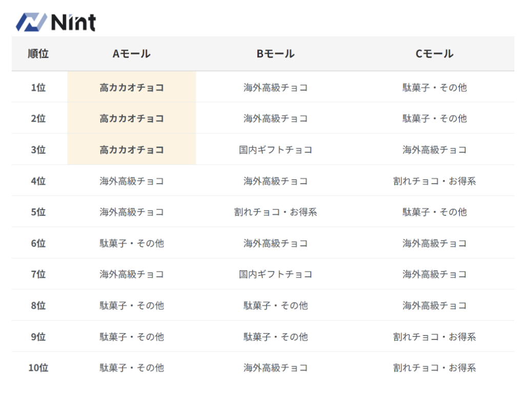 2025年、バレンタイン時期の売れ筋商品をモール別に確認すると、それぞれのモールで異なる傾向が見られました。