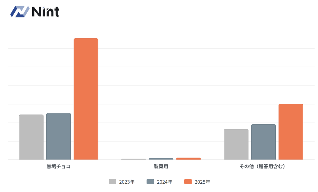 一方、「その他(贈答用含む)」は前年比105%と微増にとどまりました。バレンタイン時期のメインであるその他ですが、ギフト需要は2024年以降、オフライン回帰が影響していると考えられます。