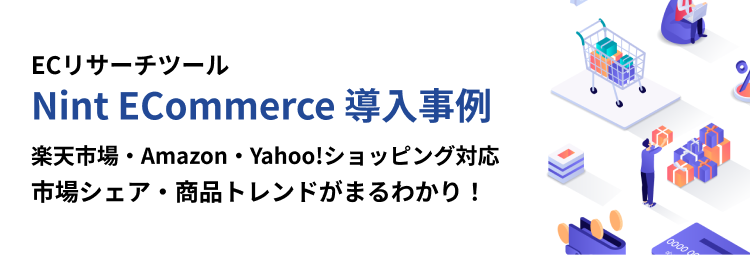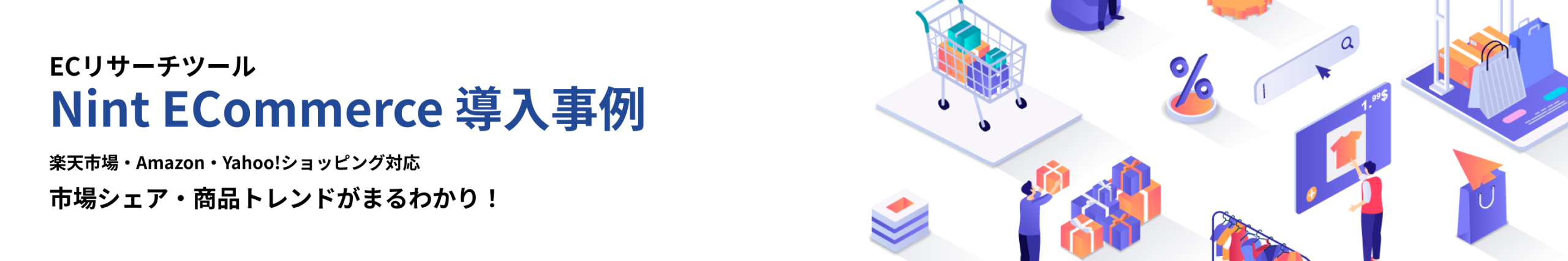 Nint ECommerceは、楽天市場・Amazon・Yahoo!ショッピングなどのモールに出店しているEC事業者やメーカー向けに、売れ筋商品・競合の動き・価格変動などをデータで可視化できるツールです。