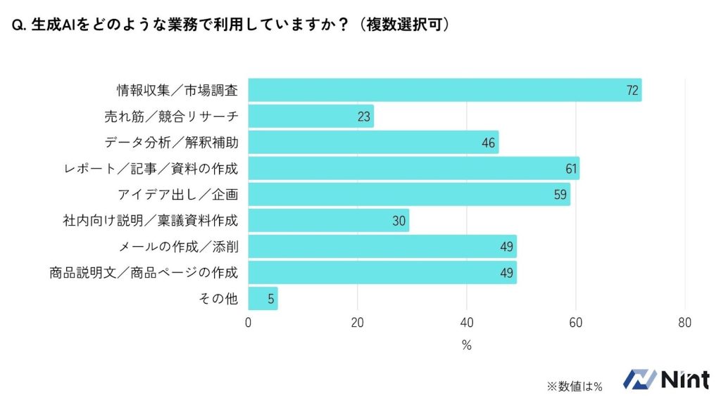 など、企画から運用まで幅広い業務で活用されている実態が明らかになっています。