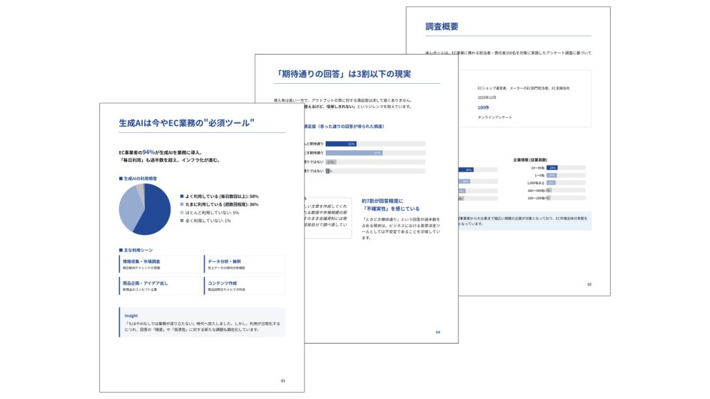 一方で、「もっともらしいが信用しきれない」「数値や根拠が曖昧で、結局使えない」といった精度への不安を感じているEC担当者も少なくありません。